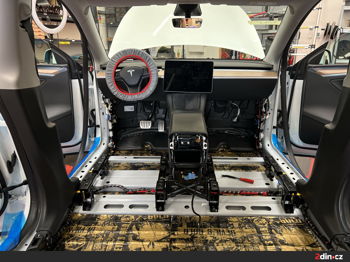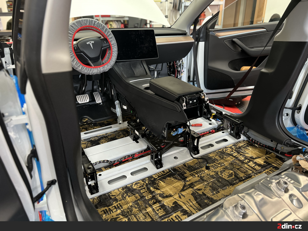 Podlaha Tesly Model Y, jako jeden z hlavních přenašečů vibrací a valivého hluku, byla odhlučněna pomocí kombinace více materiálů. Základní vrstvu tvoří STP Devil's Gold jako silný antivibrační materiál s výbornou přilnavostí. Následně byla použita kombinace sendvičového materiálu CTK Multimat PRO a akustického materiálu Silent Coat SA15 XL, které společně tvoří účinnou bariéru proti hluku. Tato vrstva také výrazně přispívá ke stabilizaci teploty v interiéru. Díky aplikaci těchto materiálů se eliminoval nepříjemný hluk od kol, zpevnila se konstrukce vozu a podstatně se snížil přenos vibrací do prostoru pro posádku.
