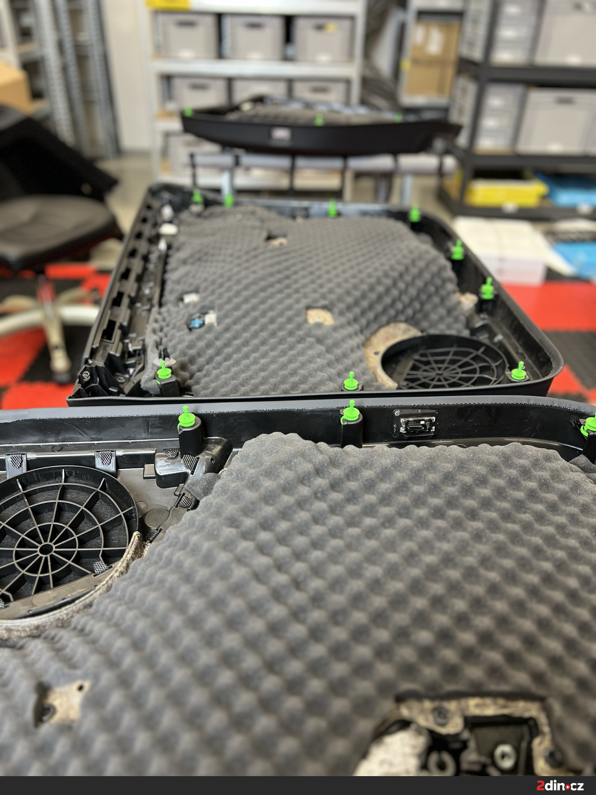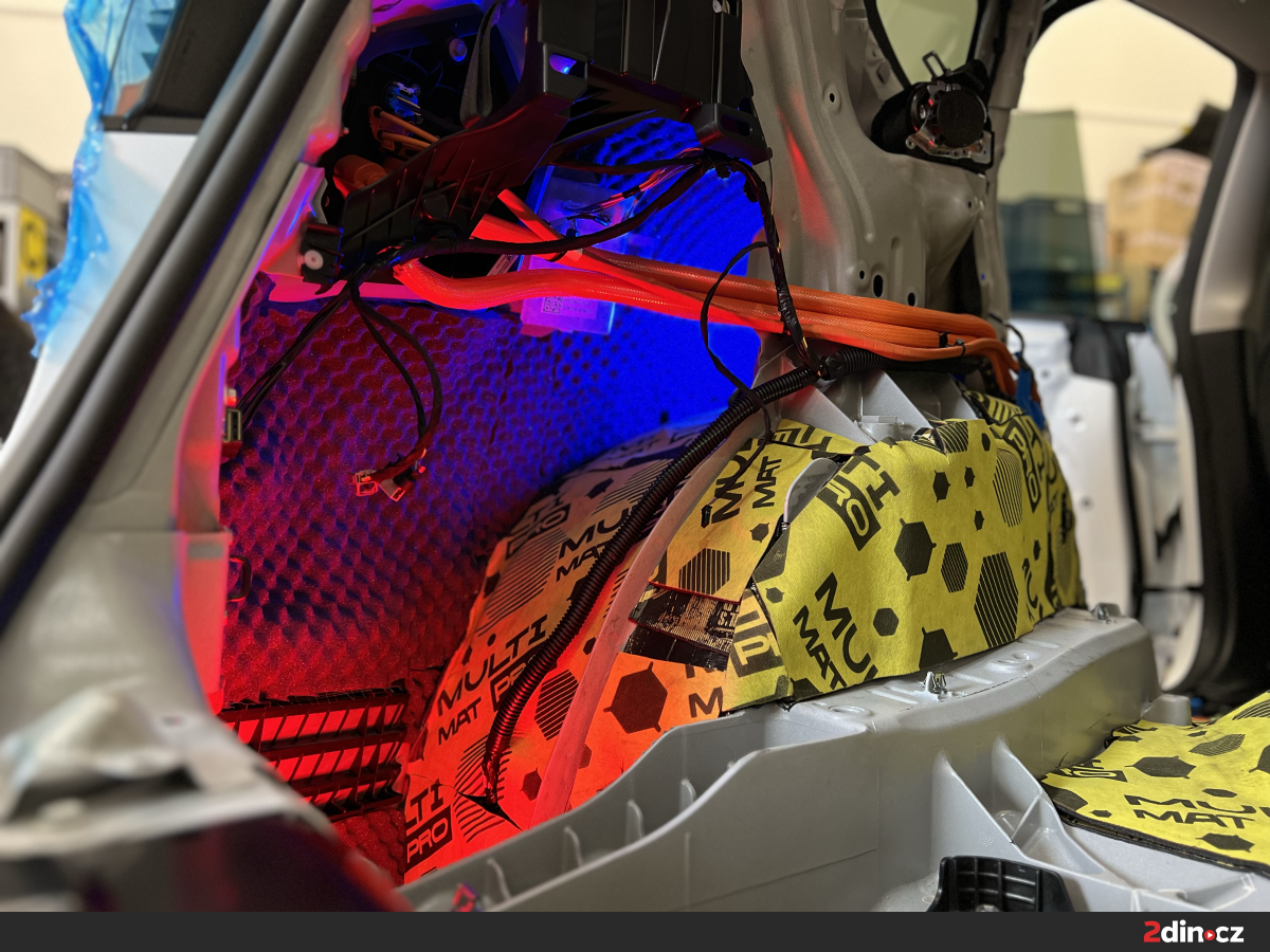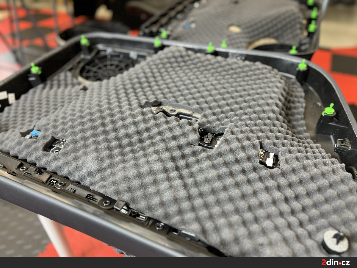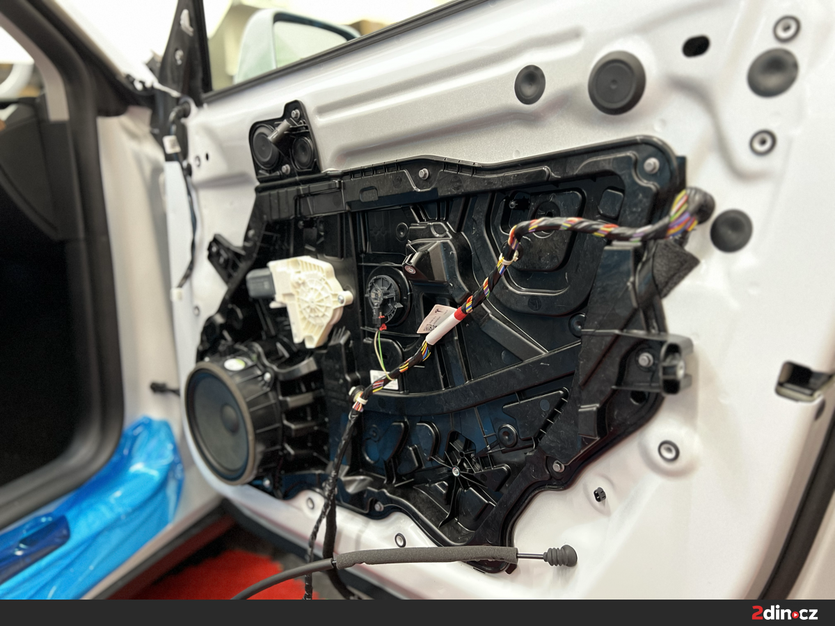 Dveře vozidla byly upraveny ve více vrstvách s použitím kombinace antivibračních a akustických materiálů. Na plechové části byla aplikována vrstva STP Aggressive Silver a CTK Acoustic 20 pro zpevnění konstrukce a redukci rezonancí. Pro další potlačení hluku a zlepšení akustických vlastností dveří následovala aplikace pohlcujícího materiálu StP Relief 15 Premium na tapecírung. Díky této vrstvě dochází ke znatelnému zlepšení akustické pohody ve voze a eliminaci běžných pazvuků způsobených vibracemi plastů a plechu. Výsledkem je pevnější a akusticky vyváženější konstrukce dveří, která účinně izoluje kabinu od vnějších ruchů.