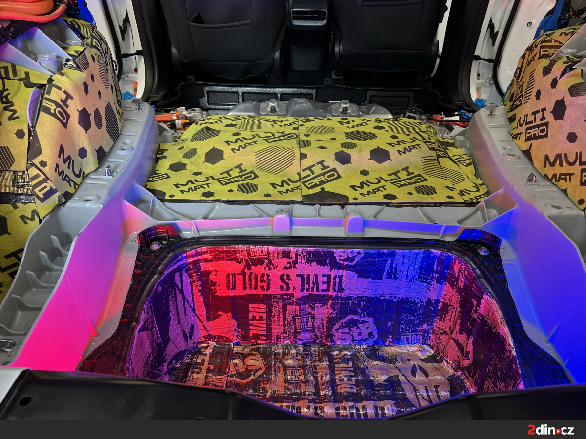 Kufr byl z hlediska odhlučnění ošetřen obdobným způsobem jako podlaha. Aplikace materiálu STP Devil's Gold zajistila pevnost a minimalizaci kovových rezonancí v zadní části vozu. Pro zvýšení komfortu a účinnosti tlumení hluku byly následně použity vrstvy Silent Coat SA15 XL a akustický materiál STP Biplast 5. Tato kombinace umožňuje nejen snížení akustického tlaku v oblasti zavazadlového prostoru, ale i omezení přenosu vibrací z podvozku do kabiny. Celkově tato úprava přispívá k tichému a klidnému prostředí v celém interiéru vozu.