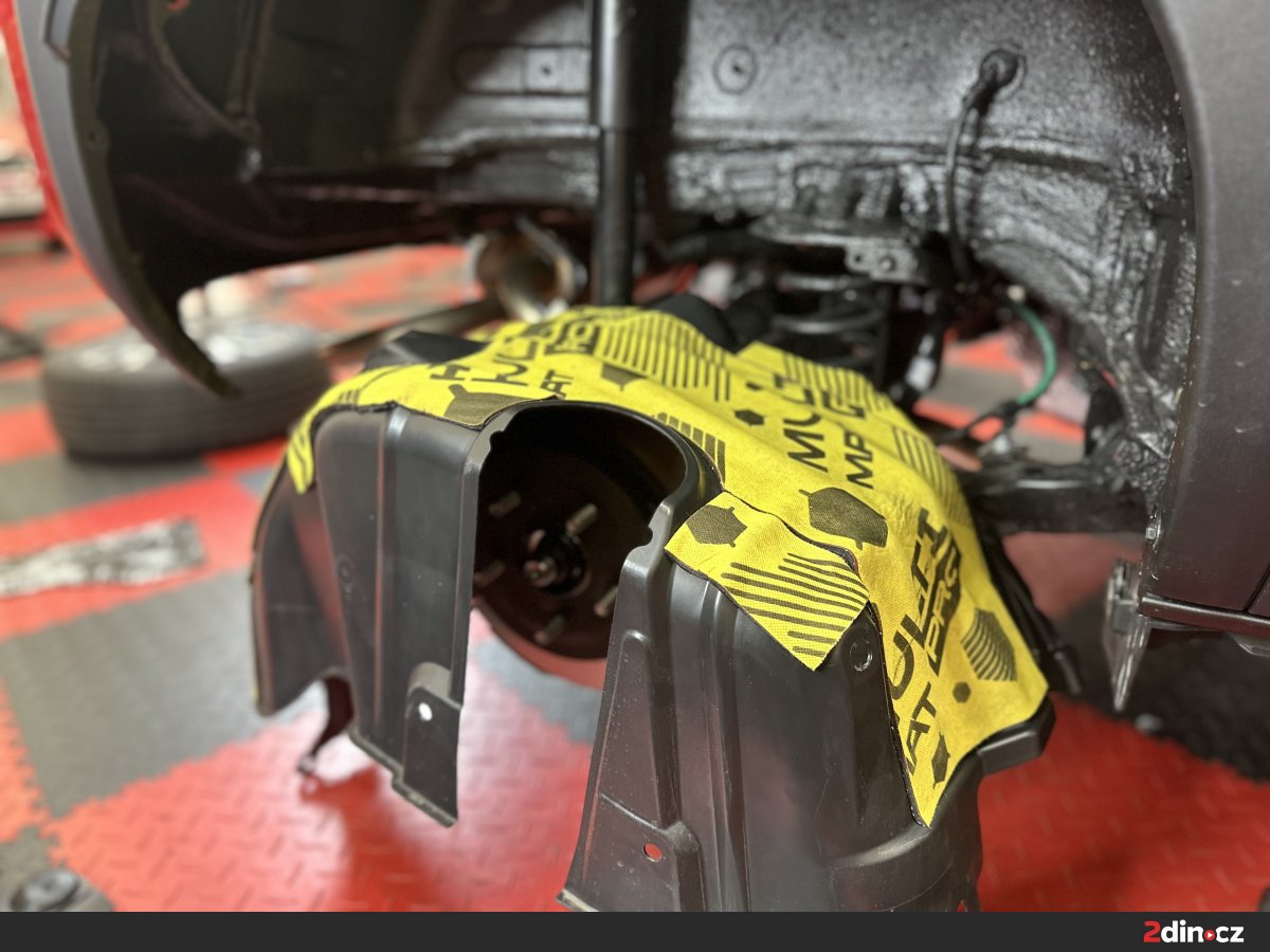 Podběhy patří mezi nejzásadnější části vozu z hlediska potlačení hluku od pneumatik, štěrku, vody a nečistot odletujících od kol. V rámci balíčku Premium Plus jsme je důkladně odhlučnili pomocí antivibračních materiálů STP Aggressive Silver a STP Devil’s Gold v kombinaci s materiály CTK Multimat PRO a StP Relief 15 Premium, které pomáhají zlepšit absorpci zvuku a celkově zklidnit tuto exponovanou oblast. Odhlučnění vozu v podbězích má velmi výrazný dopad na výsledný komfort, protože právě odtud přichází velká část rušivých zvuků při jízdě po nekvalitním povrchu. Po aplikaci je ztišení interiéru znatelné prakticky okamžitě a jízda působí podstatně dospělejším a komfortnějším dojmem.