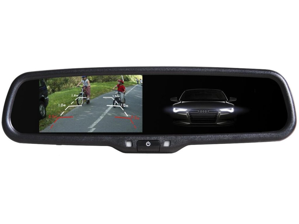 Monitor umístěný ve zpětném zrcátku slouží pro zobrazení obrazu z parkovací kamery nebo pro zobrazení obrazu DVD přehrávače. Zrcátko je umístěno na čelním skle na místě originálního zrcátka. Snadná instalace bez zásahu do interiéru automobilu.