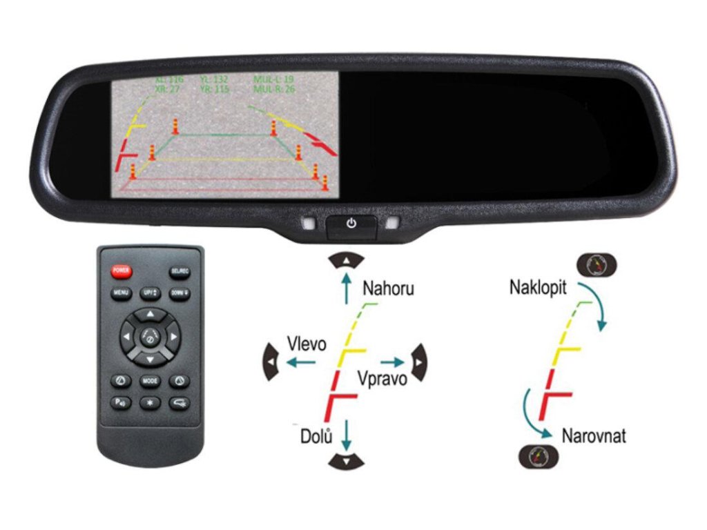 Pomocí dálkového ovladače je možné nastavit vodicí linky (trajektorie) zobrazených na monitoru při použití zadní parkovací kamery. Linky je možné posunovat ve vodorovném i svislém směru nebo je naklopit tak aby odpovídali umístění kamery a prostoru za vozidlem. Při použití kamery s vodícími linkami, je možné tuto funkci vypnout.