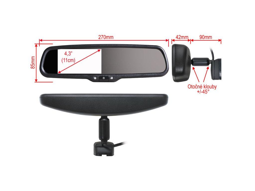 AK-043LAD monitor 4,3" ve zpětném zrcátku s funkcí automatického zatmavení a nastavitelnými vodícími linkami