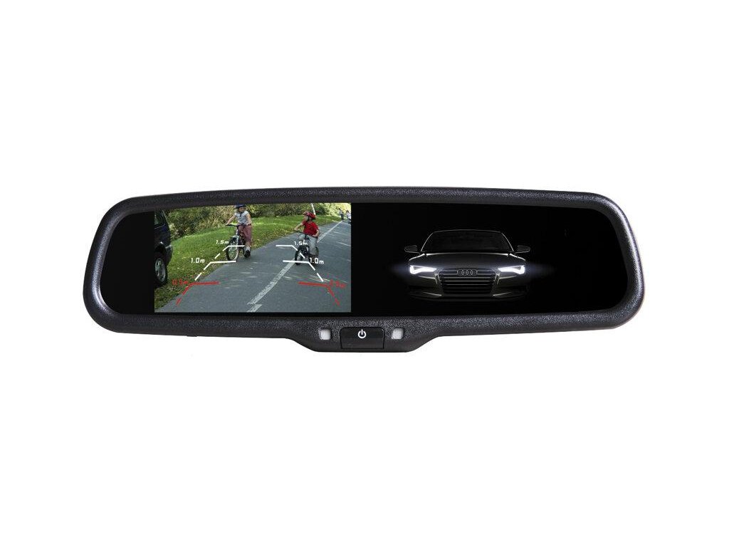 Monitor umístěný ve zpětném zrcátku slouží pro zobrazení obrazu z parkovací kamery nebo pro zobrazení obrazu DVD přehrávače. Zrcátko je umístěno na čelním skle na místě originálního zrcátka. Snadná instalace bez zásahu do interiéru automobilu.