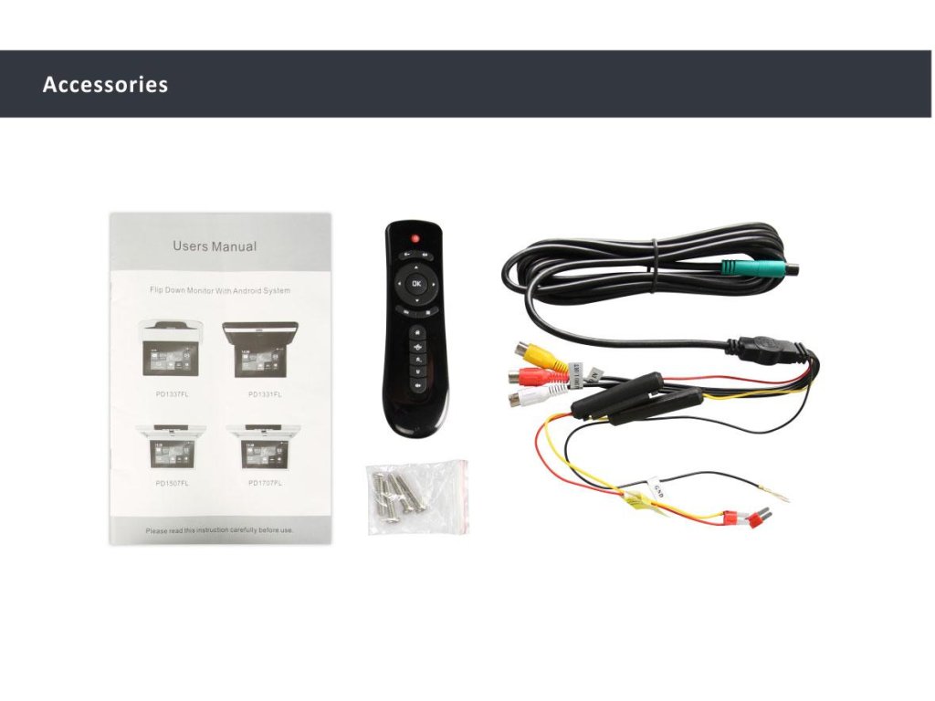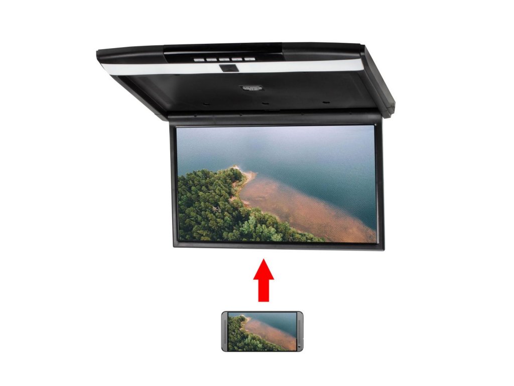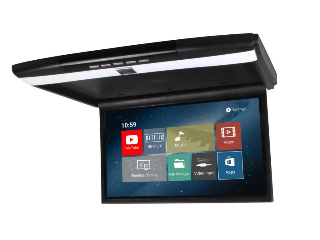 Stropní LCD monitor o velikosti 15,6", vhodný do automobilů na dlouhé cesty. Díky operačnímu systému Android lze do monitoru stahovat různé aplikace. Již předinstalovaná aplikace je Youtube. Díky Wi-Fi připojení k internetu lze být připojený k síti a sledovat videa, filmy apod online.