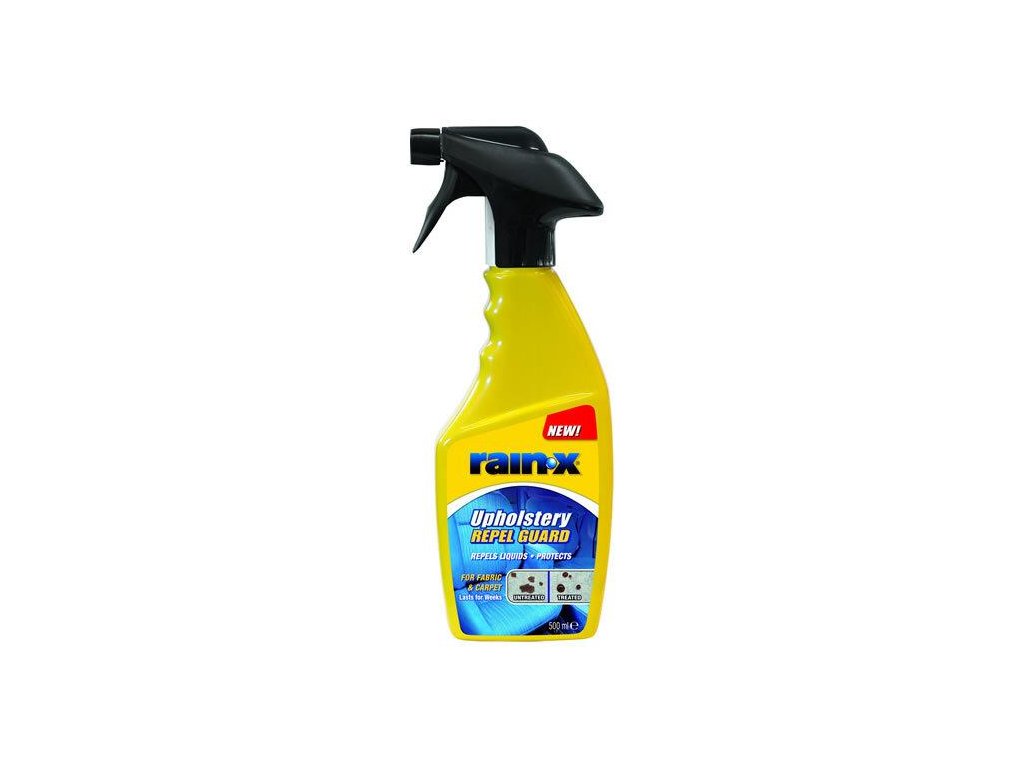 Rain-X Upholstery Repel Guard impregnace textilu. Víceúčelový sealant určený k ochraně na všech druzích textilií. Rain-X Upholstery Repel Guard ochraňuje čalounění a koberce v interiéru vašeho auta. Díky jeho složení nedovoluje vsáknutí kapalin a zabraňuje vzniku skvrn a umožňuje snadnější čistění textilu. Koberce a čalounění může neustále vypadat jako nové.
