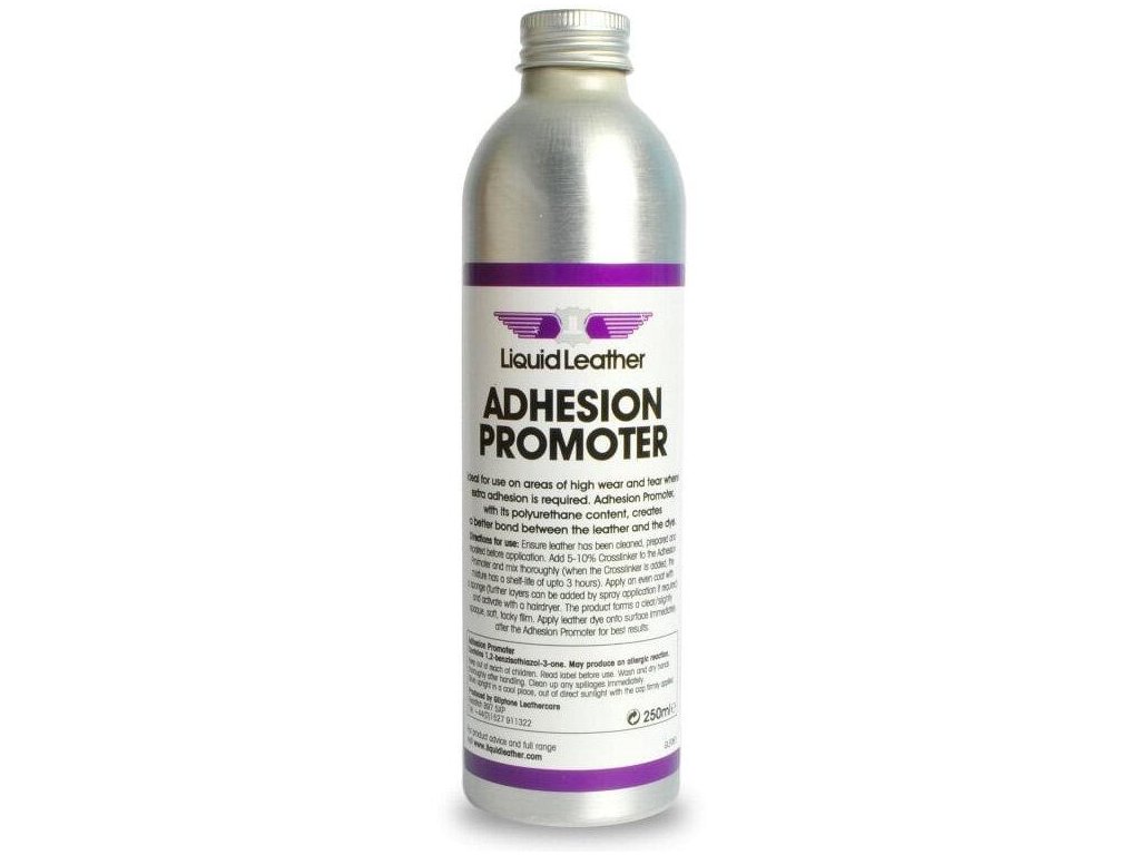 Adhesion Promoter výrazně zlepšuje přilnavost barviv, zejména v oblastech vysokého opotřebení. V kombinaci s Cross Linker vytváří měkký, lepkavý film, který zlepšuje přilnavost, pružnost a krycí vlastnosti. Ideální je také použití tam, kde došlo ke kontaminaci tukem. Objem: 250 ml.