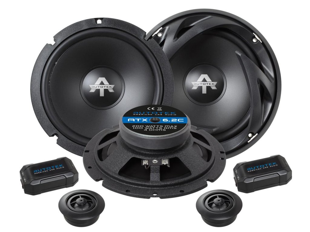 Ohm 1 pár komponentních reproduktorů Autotek ATX6.2C (2x středobas, 2x výška, výhybky)