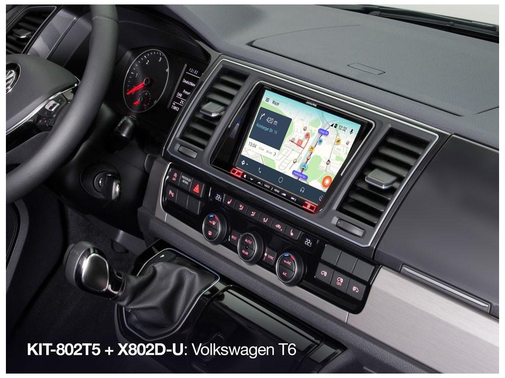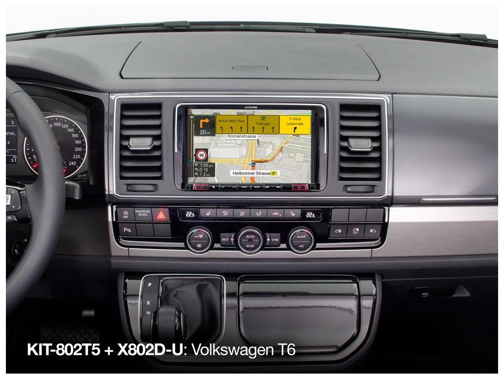Tato 8palcová montážní sada pro model Volkswagen T5 je speciálně navržena tak, aby překonala vyzvu extrémního plochého úhlu palubní desky T5. Tato sada je dodávána se všemi potřebnymi součástmi instalace, jako jsou kabelové svazky, rozhraní sběrnice CAN, montážní konzoly, anténní adaptér a obložení. Dokonce máme k dispozici štít, ktery lze snadno přitisknout na palubní desku, aby chránil displej Alpine před slunečním oslněním, což je společny problém modelu T5 v důsledku plochého úhlu palubní desky. Model KIT-801T5 je kompatibilní s modely modelů Volkswagen T5 (7H / E / J) 09/09 - 06/2015 a Alpine X802D-U.