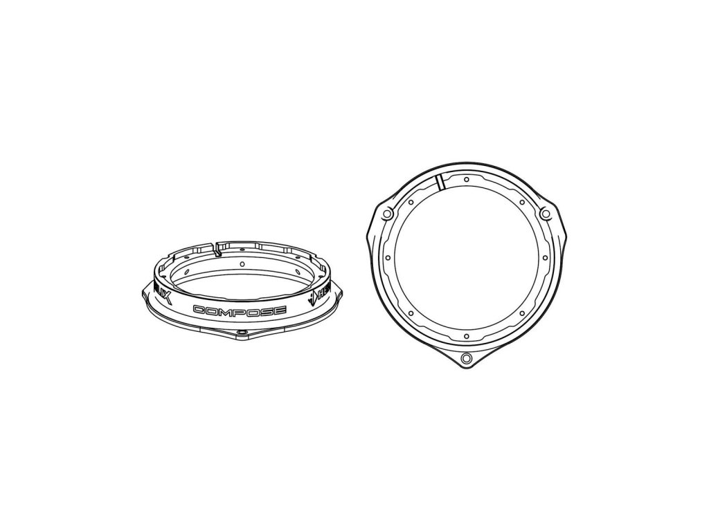- Adaptérový kroužek pro konkrétní vozidlo pro profesionální a akusticky optimalizovanou instalaci 165mm basového reproduktoru HELIX COMPOSE s technologií FlexMount165 na původní místo instalace vozidla