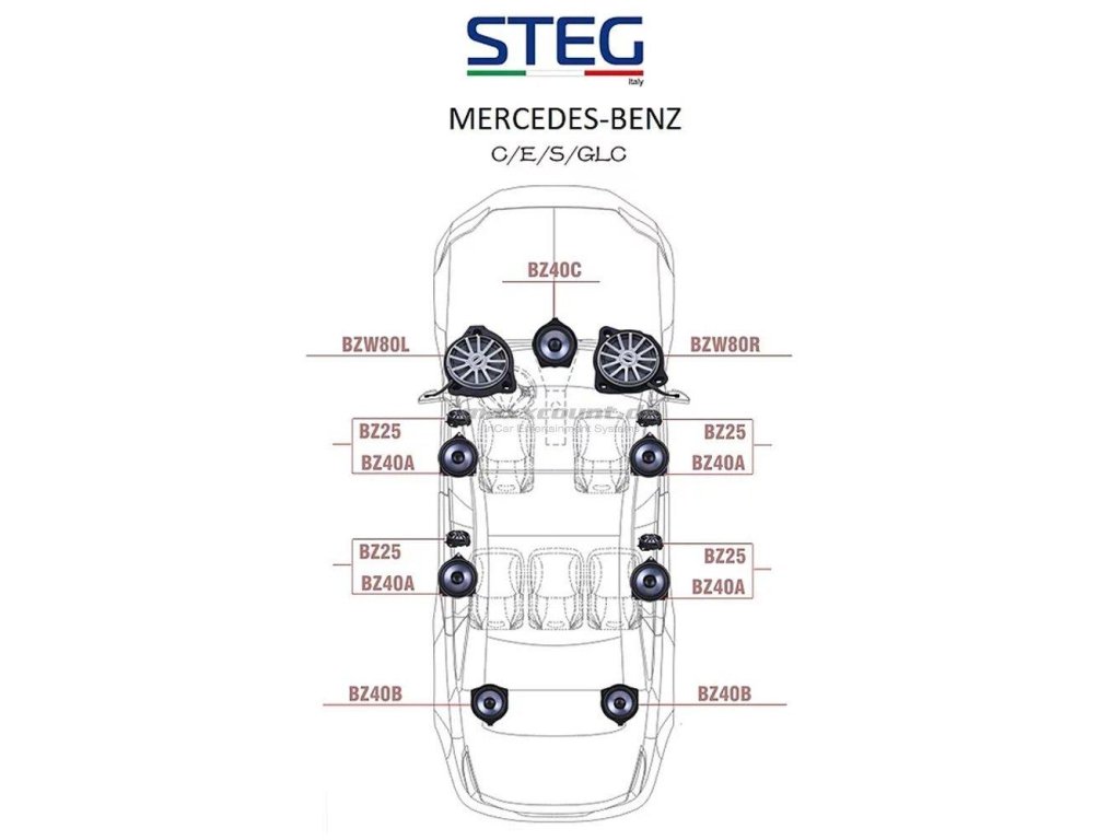 Prémiová značka Mercedes vyniká svým komfortem a pohodlím, bohužel není kladen důraz na sound systém ve voze, pokud si samozřejmě nepřiplatíte za 150 000 Kč tu nejvyšší řadu ozvučení od Mercedesu. Pro majitele Mercedesu třídy C, E, S a GLC značka STEG vytvořila jako jediná na světě kompletni ozvučení pro Mercedesy bez nutnosti zásahu do elektroinstalace. Jedná se o výměnu reproduktorů za stávající bez řezaní kabelů a složitého napojování analogových zesilovačů apod.