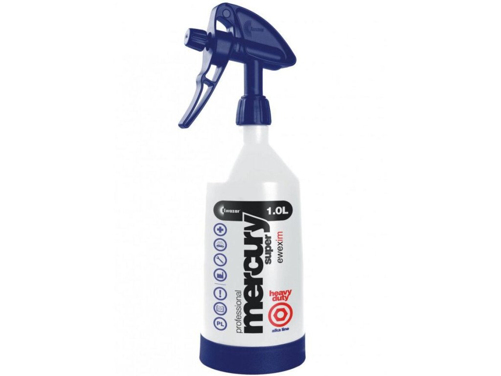 Kwazar Mercury Super Pro+ V-1 ALKALINE dvojčinný chemicky odolný postřikovač 1000 ml: 1000 ml mixovací láhev s dvojčinným, chemicky odolným postřikovačem. Mercury Super Pro+ Je šikovný pomocník k práci na malých nebo středně velkých plochách jako je přesně automobilový průmysl. Tento postřikovač z řady ALKALINE je maximálně odolný proti silným alkalickým chemickým činidlům. Hodí se k práci v detailingových salonech, autoservisech nebo k domácím pracím.