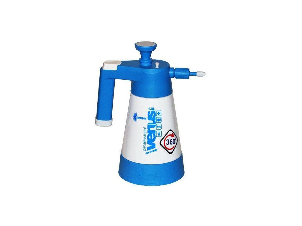 Kwazar VENUS Super Pro+ 360 V-1 ruční talkový postřikovač. Mixovací láhev o obsahu 1000 ml, chemicky odolný, ruční postřikovač a systém 360 stupňů. Mercury Super Pro+ Je šikovný pomocník k práci na malých nebo středně velkých plochách jako je přesně automobilový průmysl. Postřikovač 360°využívá elektrickou silikonovou sací trubici se zátěží a filtr pro potlačení kapalin a díky tomu je postřikovač funkční v každé poloze a dokáže pracovat i s minimálním množstvím roztoku v nádržce. Díky vysoké chemické odolnosti se hodí k použití v detailingových salonech, autoservisech nebo k domácím pracím.