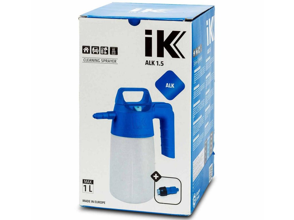 Rozprašovač IK ALK 1.5 je navržen pro rozprašování široké škály chemikálií v průmyslu čištění a dezinfekce. Zvláště vhodný pro alkalické látky, alkoholy a acetony, které se používají při úklidových pracích v potravinářských firmách, kuchyních, troubách, podlahách, sklech, ale například i při odstraňování graffitů ze stěn.