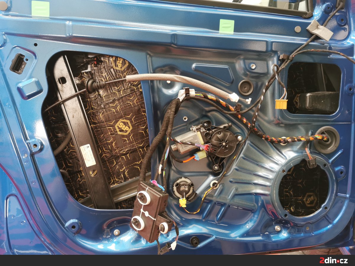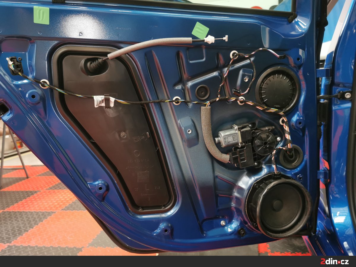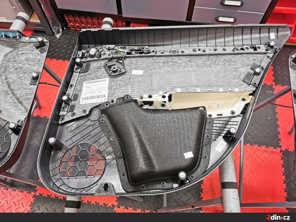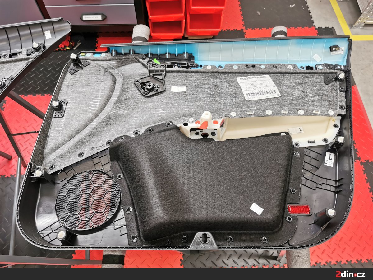 Za účelem maximálního využití potenciálu nových reproduktorů jsme provedli základní dvouvrstvé odhlučnění dveří. Nejprve jsme aplikovali antivibrační materiály STP Black Gold Camo a STP Black Silver, které účinně tlumí vibrace karoserie a eliminují rezonance. Druhou vrstvu tvoří akustická pěna STP Biplast 10, která zlepšuje akustické vlastnosti dveřních prostor. Výsledkem je nejen lepší zvuková izolace interiéru, ale především znatelně přesnější a čistší projev reproduktorů.