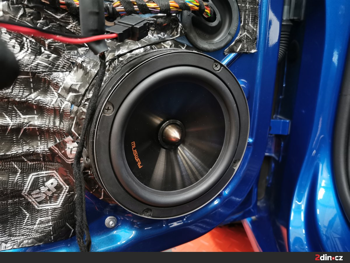 Původní tovární reproduktory jsme nahradili modelem Musway ME62, který představuje ideální volbu pro základní upgrade audiosystému. Tyto 2pásmové komponentní reproduktory poskytují překvapivě kvalitní a čistý zvuk s výraznějšími středy i výškami, aniž by vyžadovaly rozsáhlé úpravy montážních pozic. Díky citlivému naladění a dobré efektivitě skvěle hrají i při napájení z aftermarketového zesilovače, čímž se výrazně posílila dynamika celé sestavy.