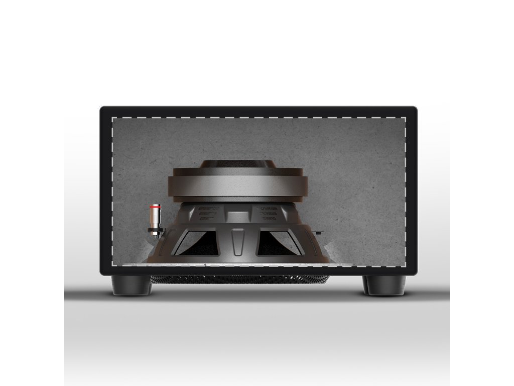 - Kompaktní konstrukce skříně s porty zajišťuje vysoké akustické tlaky a umožňuje prostorově úspornou integraci do vozidla