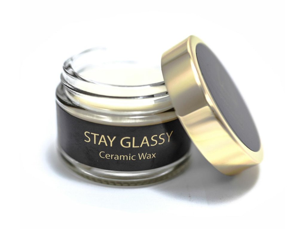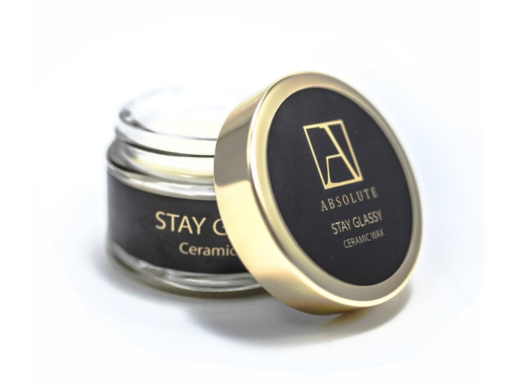 Absolute Wax Stay Glassy je vrcholný keramický vosk s obsahem přírodní karnauby a obohacen nejkvalitnějšími keramickými sloučeninami. Tento vosk nezná konkurenta ve svých nejdokonalejších vodu odpuzujících schopnostech a vytvoření nepřekonatelného lesku. Díky jeho složení je možné jej použít samostatně nebo také po nanesení keramické ochrany. S aplikovanou SiO2 ochranou se dokonale spojí a vytvoří tak pevný film, který prodlužuje její životnost. Je maximálně rezistentní s životností přes 6 měsíců a to pouze při nanesení jedné vrstvy. Vrstev ovšem můžete nanést více a tím ještě více prodloužit životnost. Je ručně vyráběný v Anglii a distribuován ve skleněné dóze se zlatým víkem.