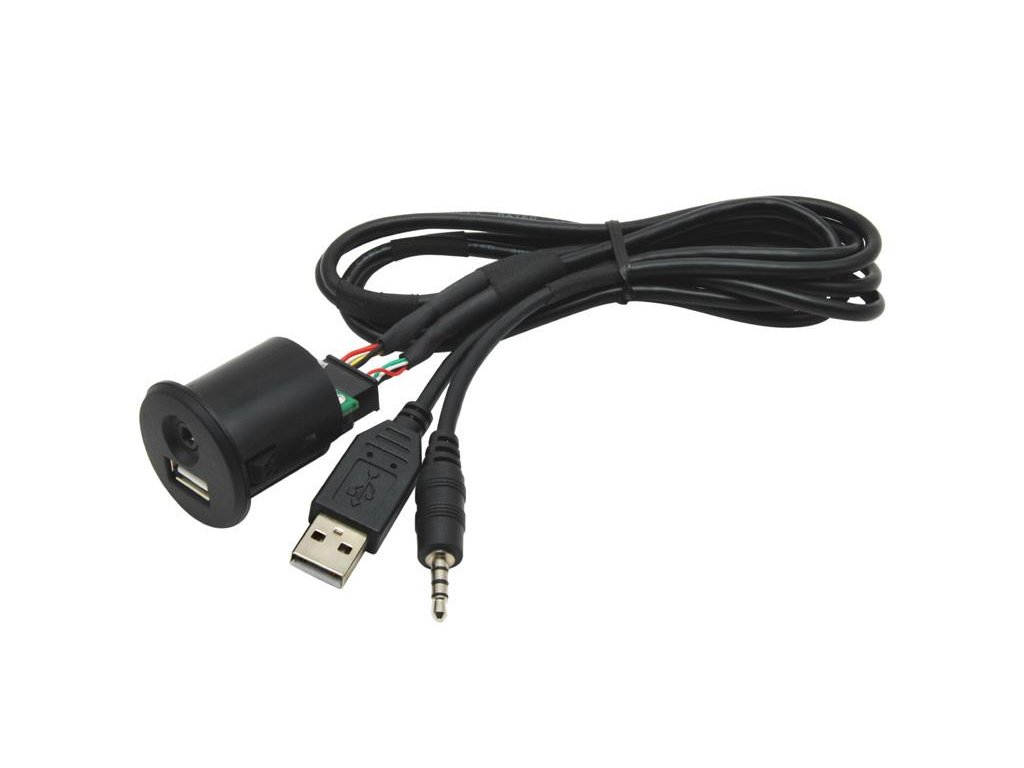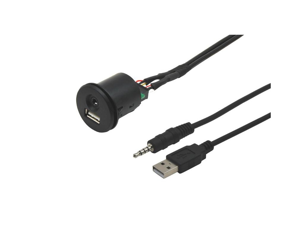 USB + JACK zásuvka s kabelem samec - samice pro autorádia s USB + 4-pólovým JACK konektorem