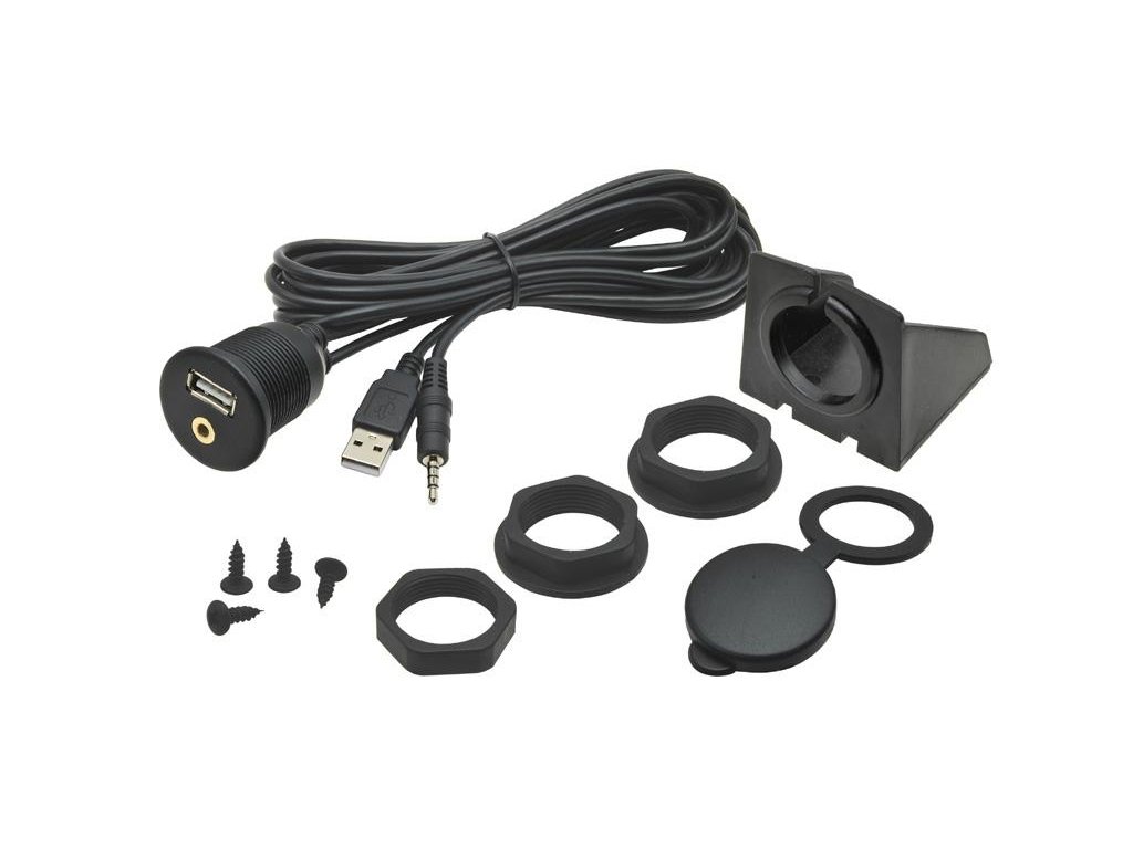 USB + JACK zásuvka s kabelem samec - samice pro autorádia s USB + 4-pólovým JACK konektorem