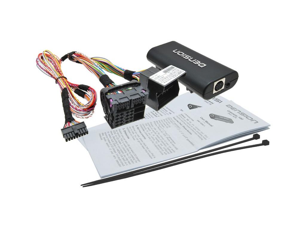 iGATEWAY multimediální adaptér Dension umožňuje připojení iPhone/ iPod vstupu k OEM autorádiu. Zobrazuje názvy alb, skladeb nebo interpreta. Napájí iPod a ovládání je třeba i z volantu. Je zde snadná instalace a demontáž bez zásahu do elektroinstalace nebo interiéru automobilu.