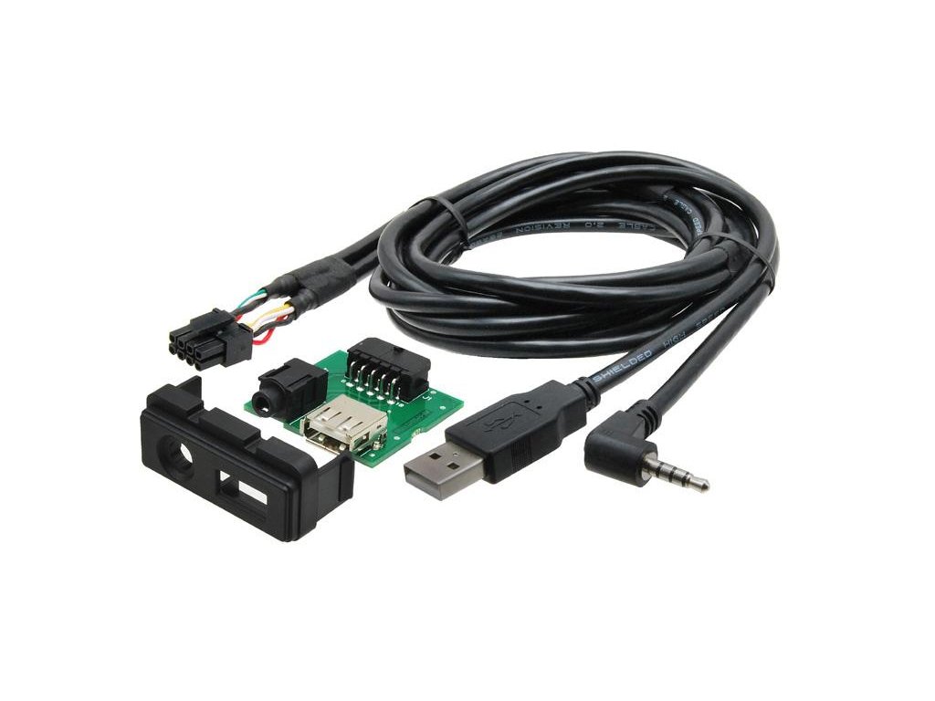 Adaptér pro připojení USB a AUX signálu, nahrazuje původní konektor v automobilu při použití aftermarket (dodatečně) instalovaného autorádia.