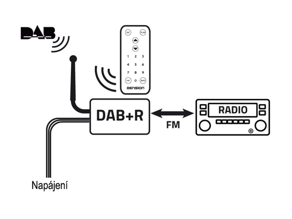 DAB+R modul Dension s dálkovým ovladačem umožňuje poslech vysoce kvalitního DAB digitálního rozhlasového vysílání prostřednictví Vašeho autorádia. Přenos audio signálu vestavěným FM modulátorem.