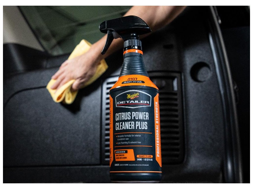 Víceúčelový přípravek pro profesionální salony i pro nadšence do garáže. Čistič s nízkou pěnivostí, je skvělým pomocníkem pro rychlé odstraňování špíny, skvrn, mastnoty a jiných nečistot ze všech povrchů jako jsou plasty, koberce, čalounění, motor, pneumatiky a ostatní. Je postaven bez obsahu rozpouštědel a tím pádem se hodí pro práci s tepovači, extraktory které dokáží pracovat s teplou a studenou vodou ale také pro vzduchové čistící stroje. Meguiar´s Citrus Power Cleaner Plus disponuje svěží vůní a interiér vašeho auta svěže provoní. Koberce a čalounění nebudou slepeny zbytky přípravku a textilie budou měkké a příjemné na dotek. Řada Detailer RTU ( Ready To Use) je profesionální kosmetika vhodná pro použití doma i v detailerských salonech.