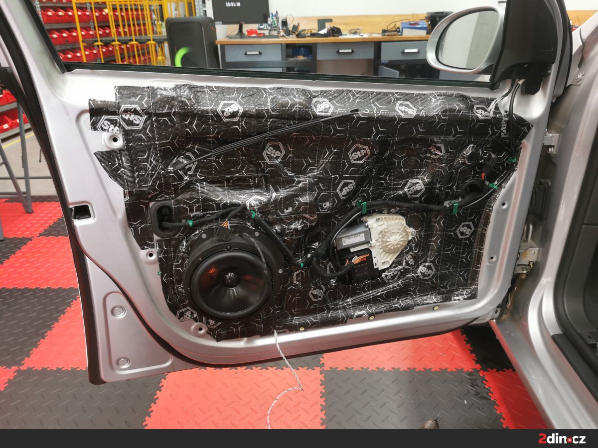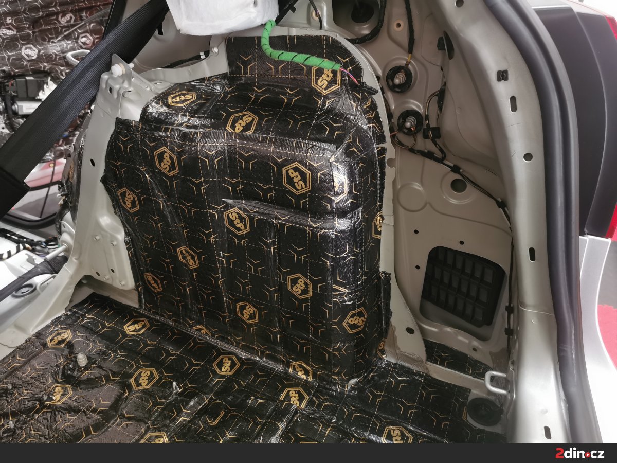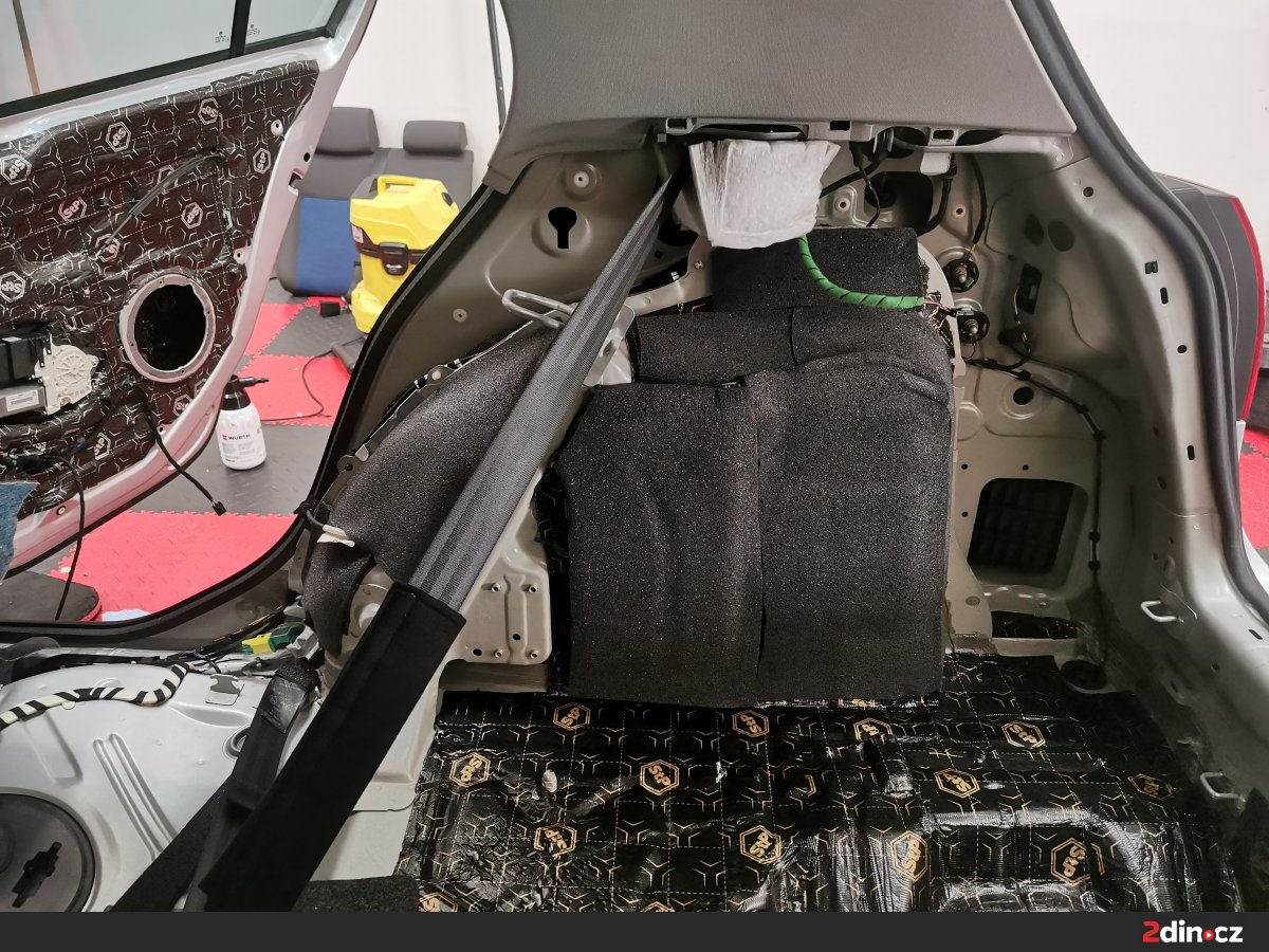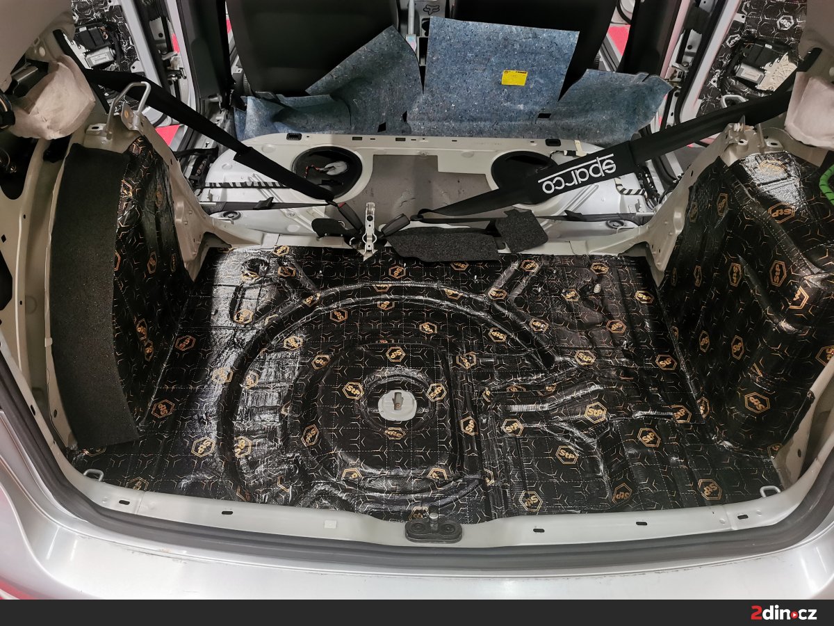 Cílem bylo výrazné snížení celkové hlučnosti a příprava prostoru pro nový audio systém, který jsme do auta rovněž montovali.