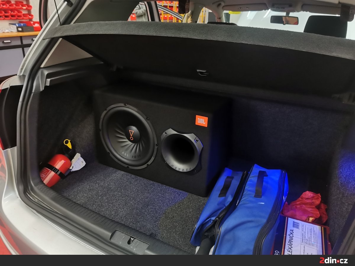 Součástí úprav bylo i vylepšení audio systému. Pro basovou složku byl do kufru instalován aktivní subwoofer JBL BassPro 12, který kombinuje vysoký výkon, hluboký a čistý basový projev s integrovaným zesilovačem v kompaktním těle. Díky promyšlené montáži do odhlučněného prostoru se podařilo dosáhnout maximální efektivity subwooferu bez zbytečných vibrací nebo zpětných rezonancí. JBL BassPro 12 tak přináší mohutný, ale přesný bas, který se dokonale hodí pro dynamický poslech v každodenním provozu.
