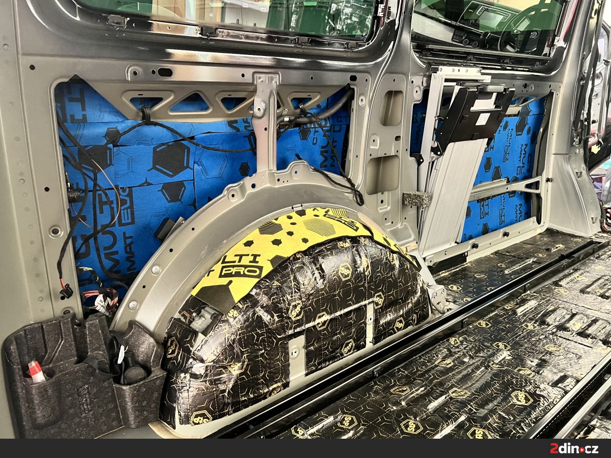 Tato montáž budiž důkazem, že i terénní dodávka dokáže nabídnout pohodlí, ticho a hudební projev na úrovni. Náš balíček odhlučnění Premium Plus pokryl všechny zásadní části vozu, tedy dveře, podlahu, motorovou část, strop, kufr a podběhy. Díky tomu se podařilo výrazně snížit hluk od kol, podvozku, motoru, aerodynamiky i zadní části karoserie. Rozdíl je markantní zejména při dálničních rychlostech, při jízdě po hrubém asfaltu a na delších trasách, kde se dříve hluk ve velkém interiéru více hromadil. Po odhlučnění působí kabina klidněji, pevněji a kultivovaněji. Ztišení interiéru navíc snižuje únavu řidiče, takže má tento zásah i bezpečnostní rovinu. A nakonec jsme tu ještě měli upgrade audio sestavy, díky kterému je nyní jízda hotový požitek.