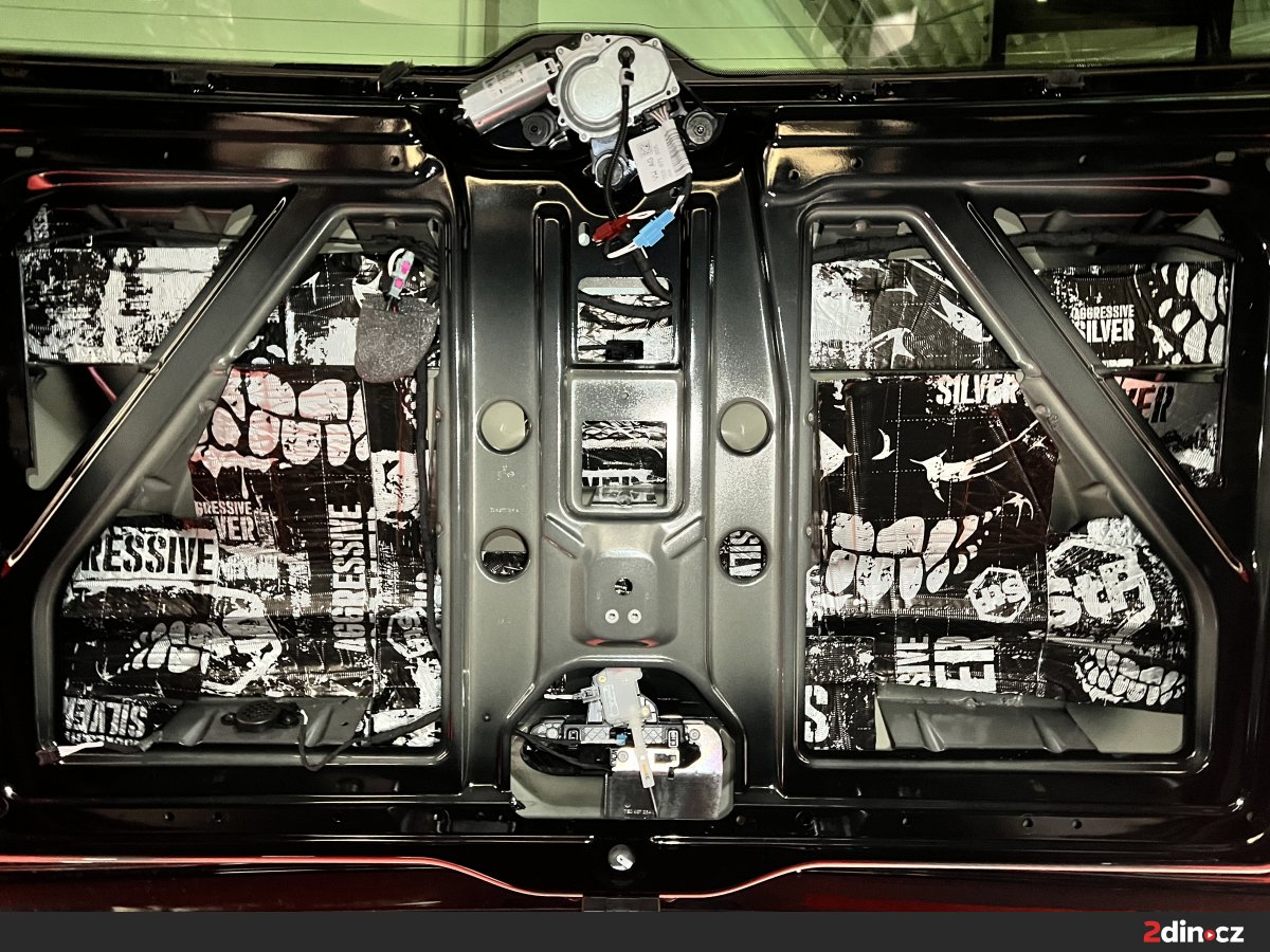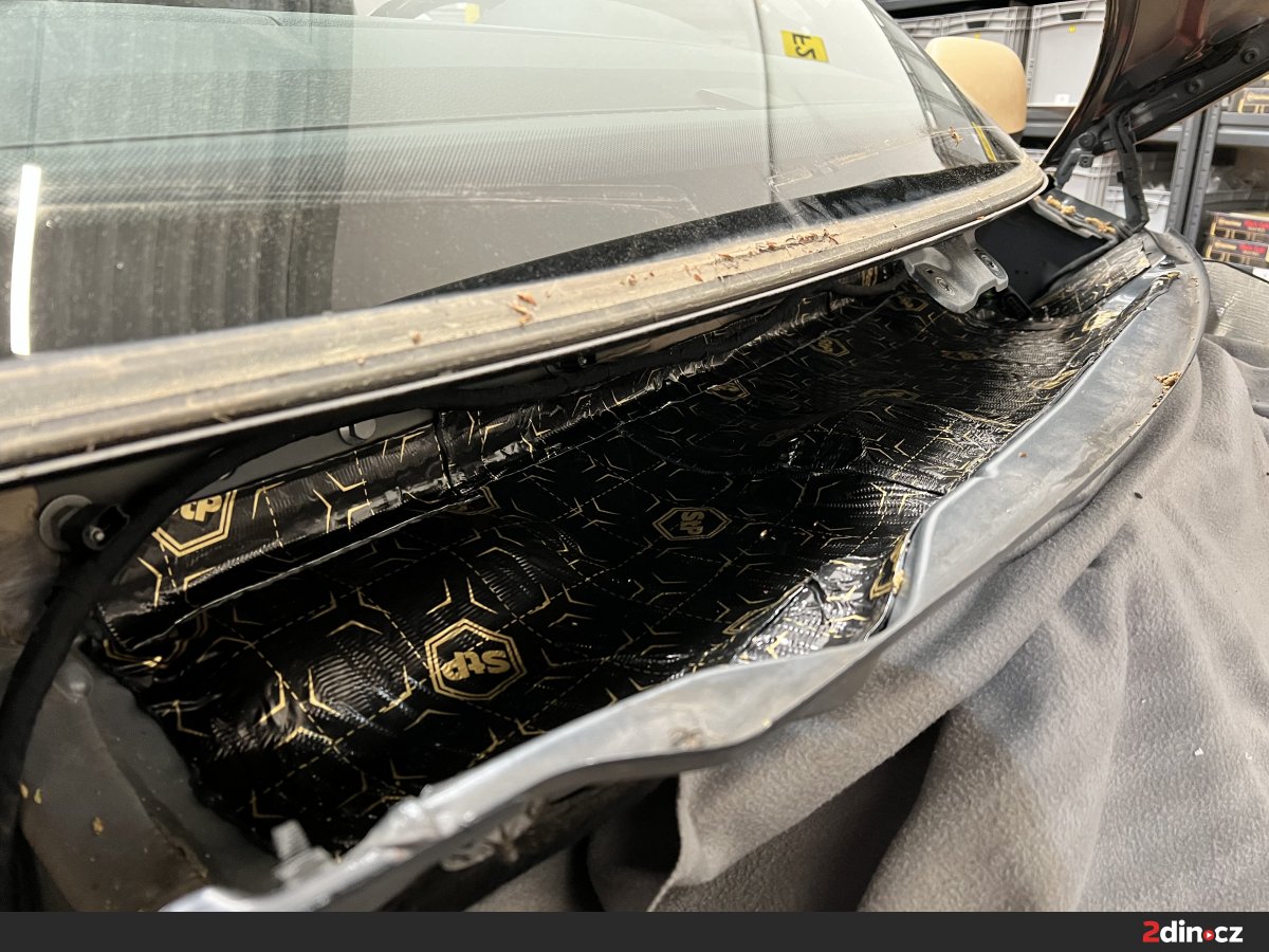 Kufr může fungovat jako velká rezonanční komora – hluk od zadní nápravy, pneumatik, bočních plechů a zadních partií karoserie se zde snadno násobí a následně se šíří dopředu k řidiči i cestujícím. Při montáži jsme proto odhlučnili dostupné plechové části kufru, boční plochy a navazující části zadního prostoru. Jako první vrstva byl použit antivibrační materiál STP Black Gold, který zpevňuje plechy a omezuje nízkofrekvenční rezonance. V doplňkových místech byl aplikován také STP Aggressive Silver. Druhou izolační vrstvu tvořily materiály CTK Multimat EVO a CTK Multimat PRO, které pomáhají blokovat prostup hluku do kabiny. Akustický materiál STP Biplast 10 společně se Silent Coat SA15 XL se postaraly o pohlcení zbytkového hluku a omezení drobných pazvuků.