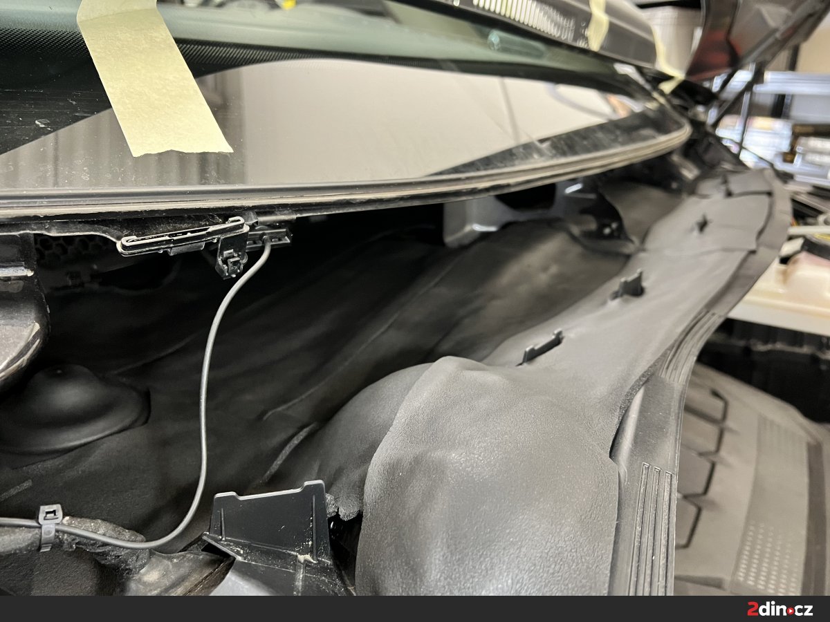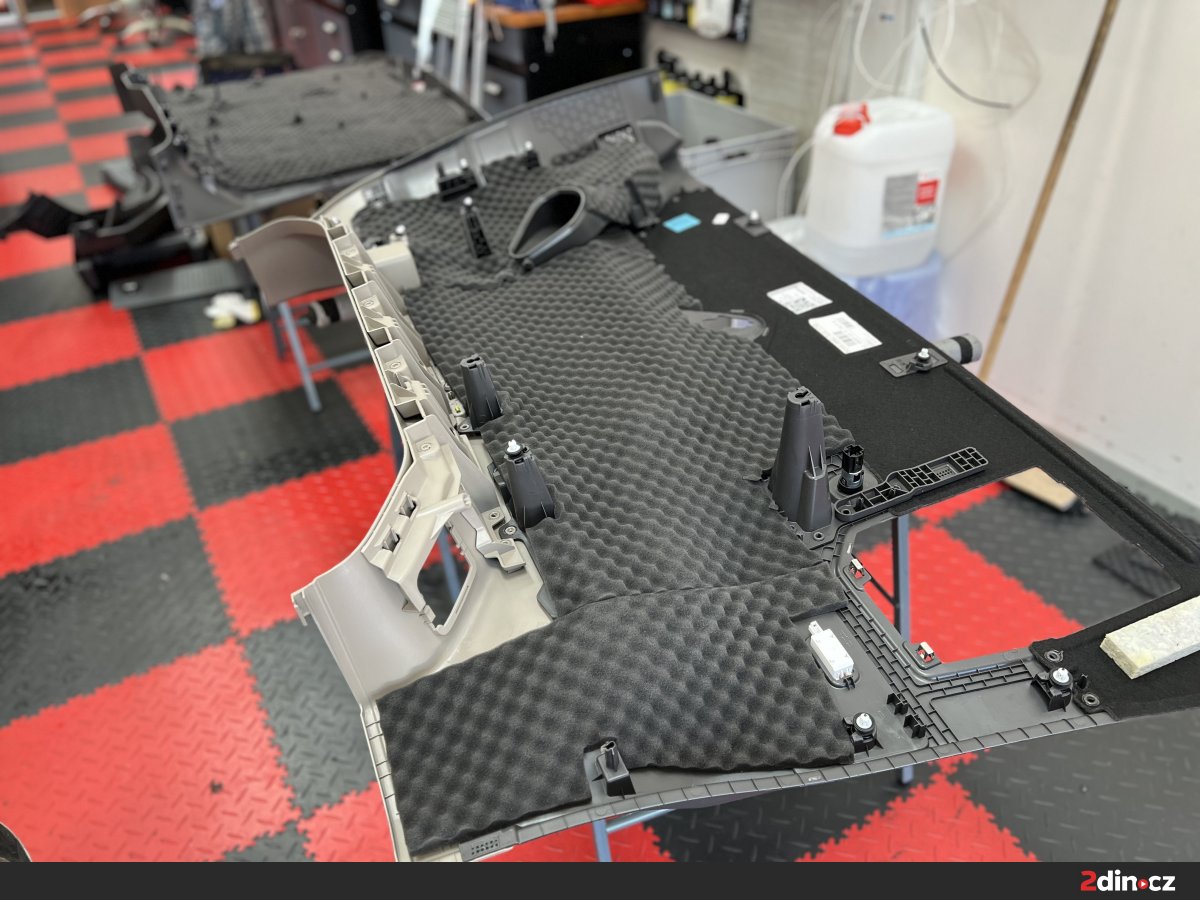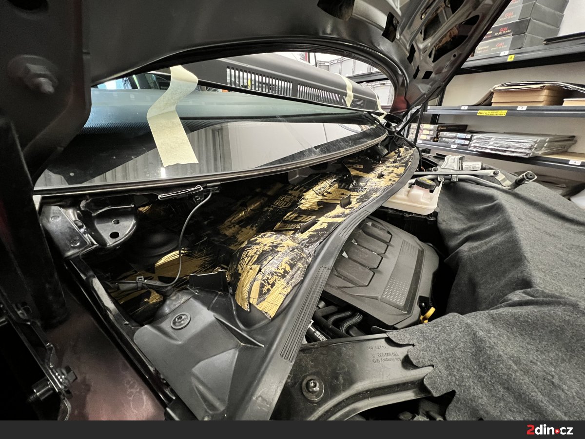 Následně jsme se zaměřili na přední část vozu, kde se nachází jeden z hlavních původců hluku v autě – motor. Jako obvykle jsme zde odhlučnili kapotu motoru a mezimotorovou přepážku, jež byly opatřeny silnou vrstvou antivibračního materiálu STP Aggressive Silver. Poté byl přidán termoakustický materiál STP AeroFlex 10, který efektivně odděluje kabinu od teplotního a akustického zatížení způsobeného činností pohonné jednotky. Pro maximální ochranu a výdrž byla kapota finálně překryta hliníkovou folií STP Aero Alum, která chrání materiály proti sálavému teplu motoru a zároveň působí jako dodatečná protihluková bariéra.