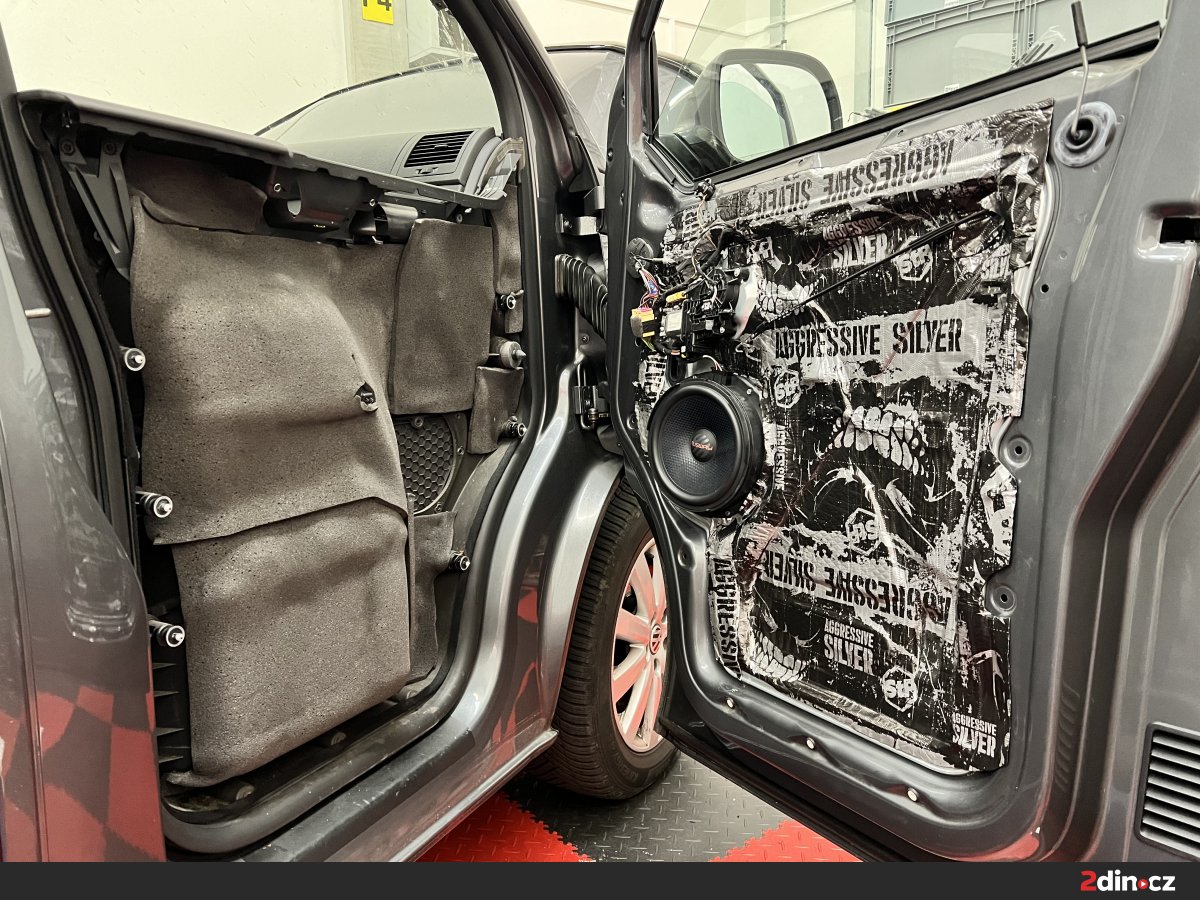 Základem kvalitního ozvučení je správně provedené odhlučnění auta. U Volkswagenu T5 jsme se zaměřili na dveře, které mají zásadní vliv na výsledný projev reproduktorů. Bez akustické úpravy by docházelo k nežádoucím vibracím plechů, rezonancím plastových výplní a ztrátám energie ve středobasovém pásmu. To by zbytečně omezovalo potenciál nově instalovaných reproduktorů. Pro odhlučnění jsme použili kombinaci materiálů STP Aggressive Silver, STP Black Gold a STP Biplast 10. Antivibrační materiály zpevňují plechy dveří, potlačují rezonance a pomáhají vytvořit stabilnější pracovní prostředí pro reproduktory. Akustický materiál následně omezuje pazvuky, vrzání a odrazy uvnitř dveřní výplně. Výsledkem je tišší kabina, pevnější basy a čistší zvuk i při vyšší hlasitosti.