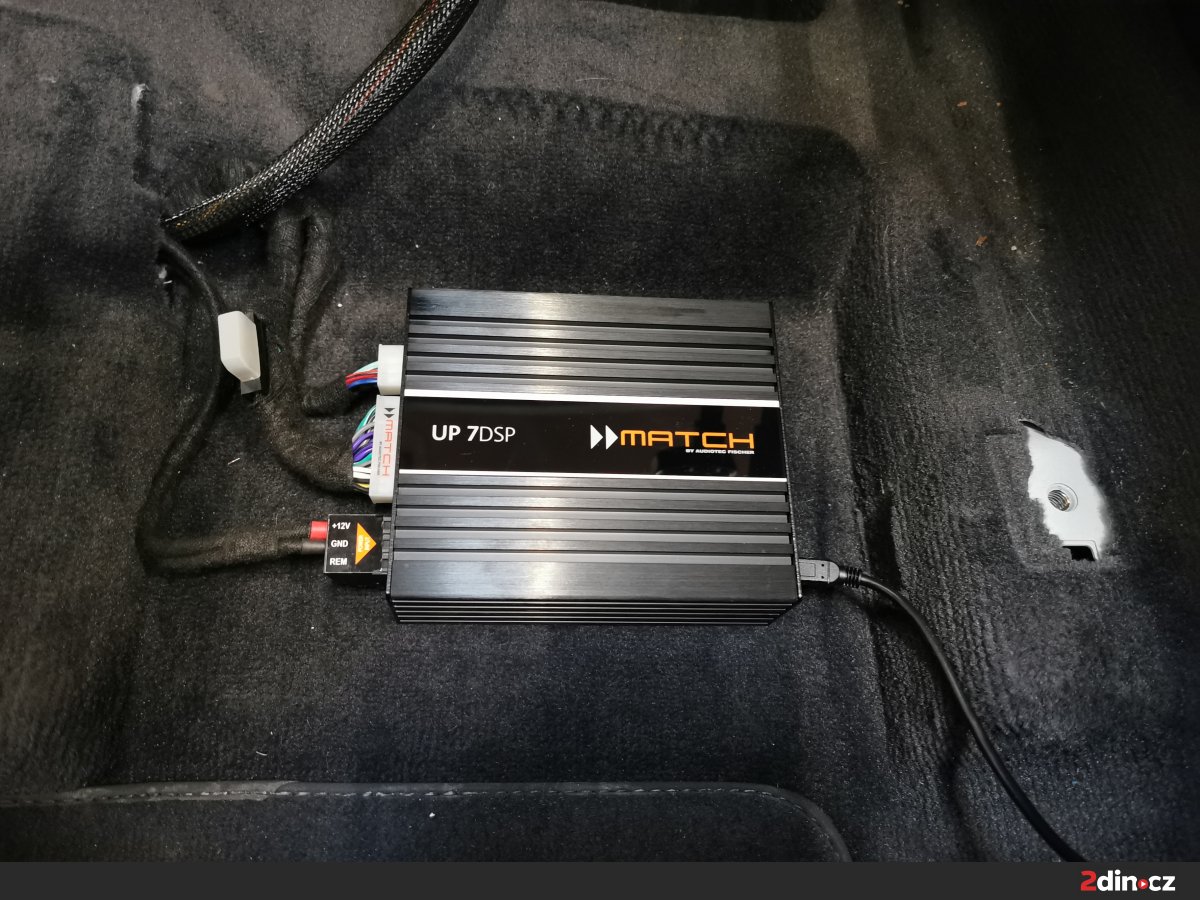 Srdcem celého audio upgradu v tomto Passatu se stal zesilovač s DSP procesorem Match UP 8DSP, který nejen že zvyšuje výkon všech částí nové sestavy, ale hlavně umožňuje detailní vyladění zvuku přes software DSP PC-Tool. Pomocí tohoto softwaru lze nastavovat časové korekce, fázování jednotlivých reproduktorů, ekvalizaci i aktivní výhybky. To vám dává kontrolu nad každou složkou zvuku a zajišťuje, že projev reproduktorů a subwooferu bude zcela přirozený a nezkreslený. Ve voze VW Passat B8 jsme zesilovač umístili tak, aby nenarušoval prostor a přesto byl snadno přístupný pro servis a doladění.