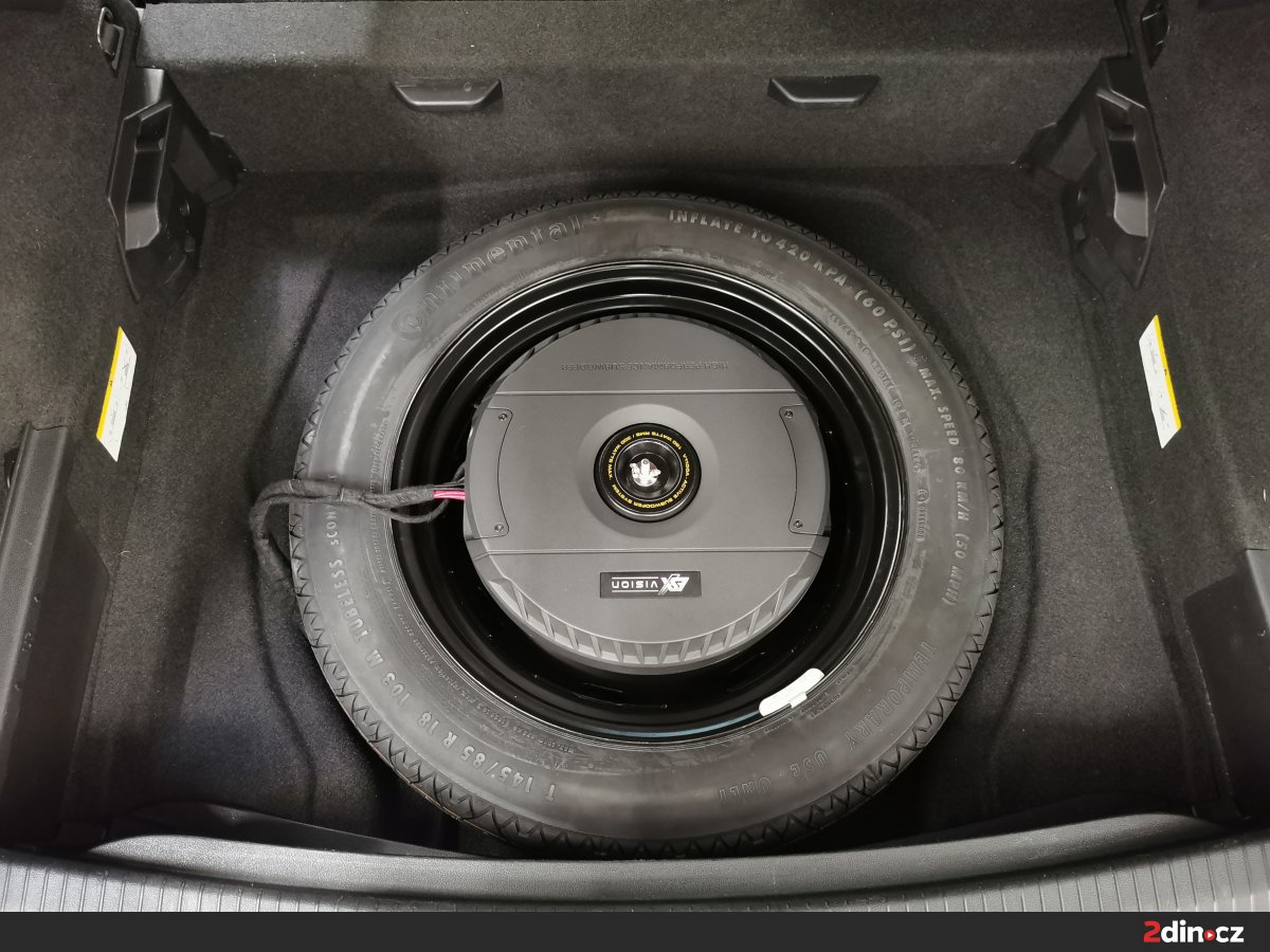 ✅ Aktivní subwoofer v rezervním kole: Nezabírá místo v kufru a dodáva hluboke a přesné basy