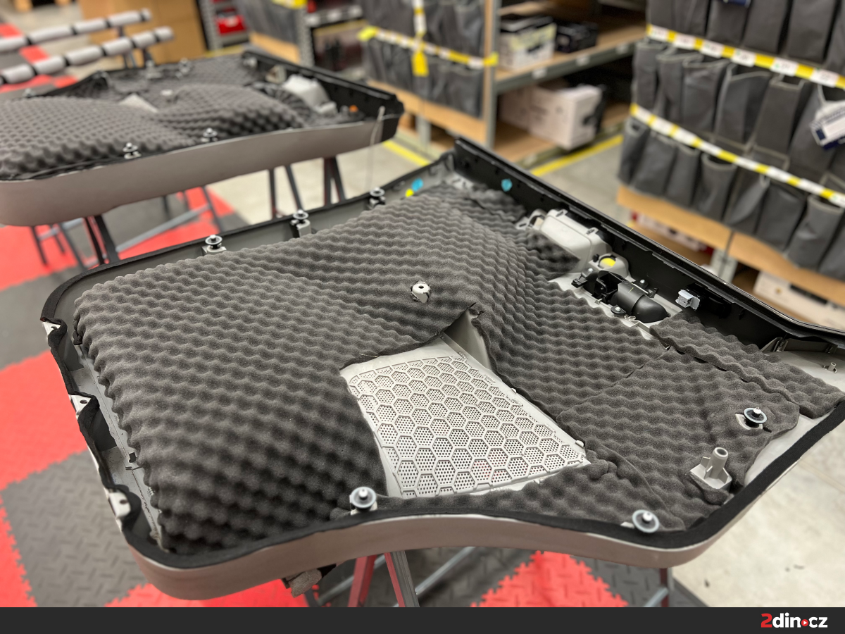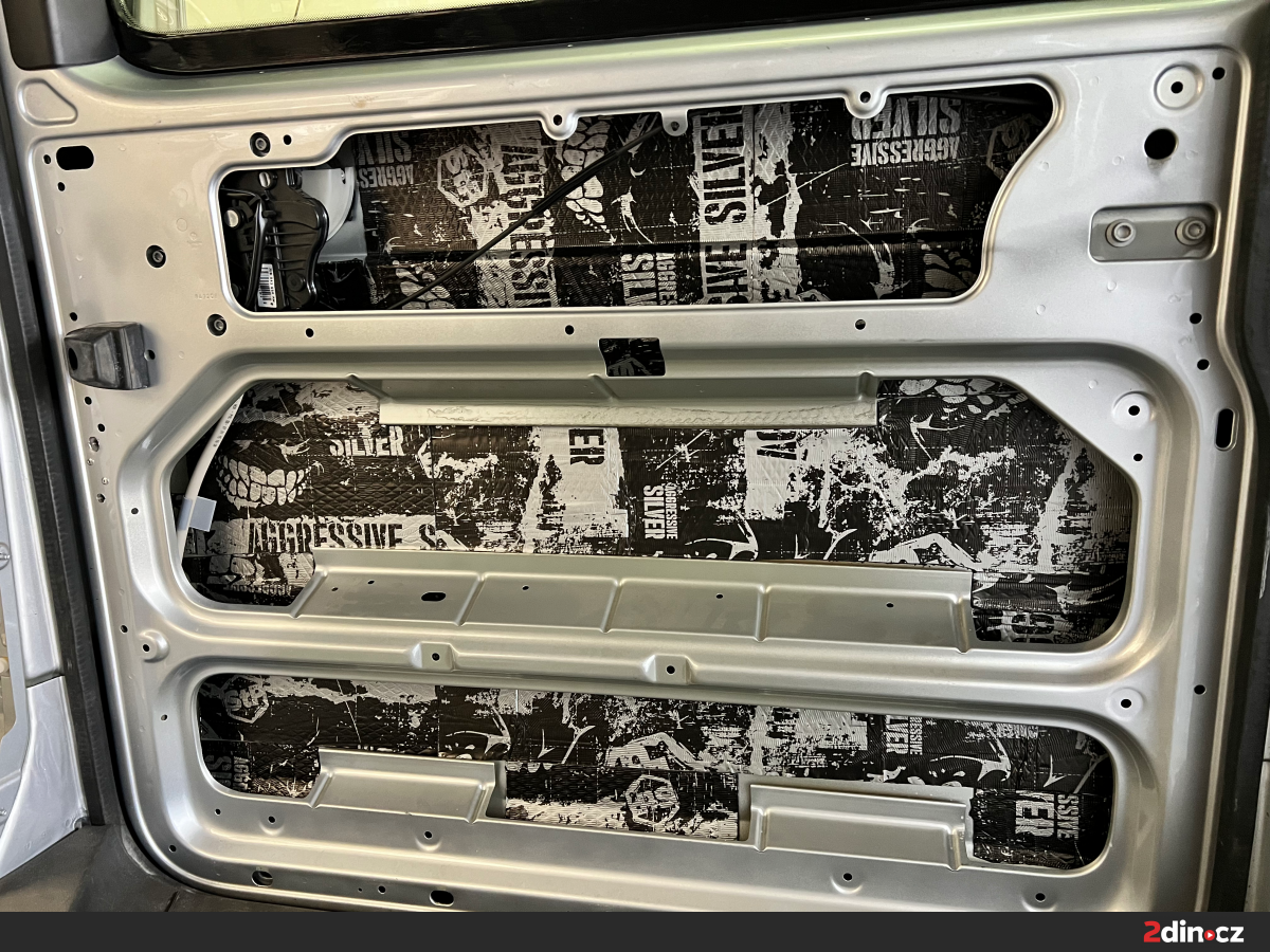Dveře zde patřily mezi klíčová místa, kde do značné míry docházelo k rezonancím a kudy do interiéru pronikaly nepříjemné pazvuky. V rámci odhlučnění jsme je nejprve ošetřili antivibračním materiálem STP Aggressive Silver, který šel na vnitřní i vnější plechy dveří. Zpevnil konstrukci a zabránil šíření vibrací. Na tapecírung byla použita akustická pěna StP Relief 15 Premium, která pomáhá zamezovat styku plastů s plechovými částmi a účinně pohlcuje hluk. Vnitřní akustickou vrstvu tvořil materiál CTK Multimat EVO, který zajišťuje zvukovou izolaci a zároveň stabilizuje celou plochu dveří. Tato kombinace umožnila zvýšit akustický komfort v kabině a rovněž vytvořila lepší podmínky pro reproduktory.
