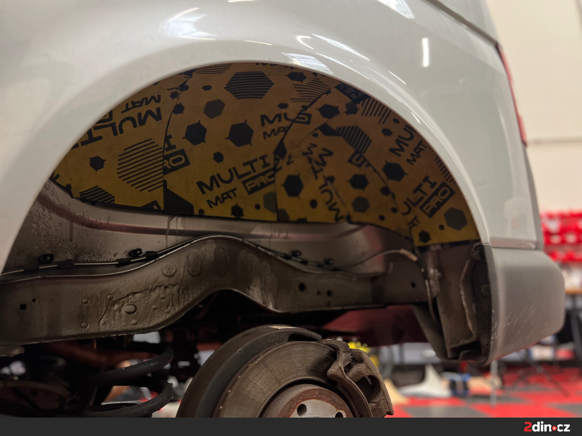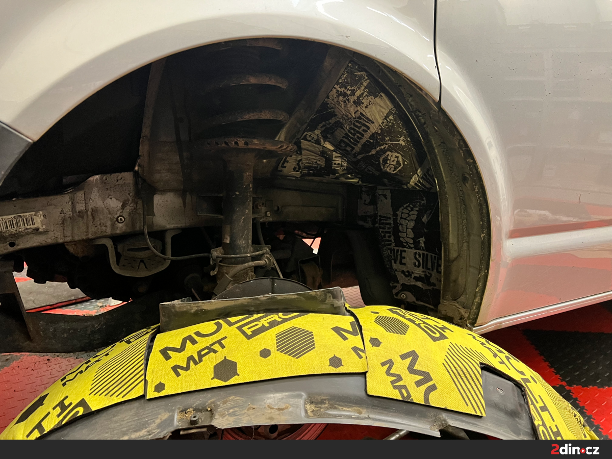 Podběhy byly ošetřeny ve dvou krocích. Na jejich vnitřní plechovou část byl aplikován STP Aggressive Silver, který zamezil přímému přenosu vibrací od kol. Na tuto vrstvu byla nalepena akustická pěna STP Biplast 10, která se skvěle hodí k pohlcování hluku v částech vystavených neustálým rušivým vlivům od asfaltu a kamínků. Takovýto zásah se vždy zásadně projeví při jízdě po hrubých površích a ve vyšších rychlostech.